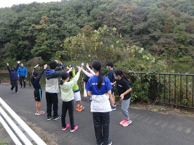 朝一は、八丁湖マラソンからスタートです!親も走ります!